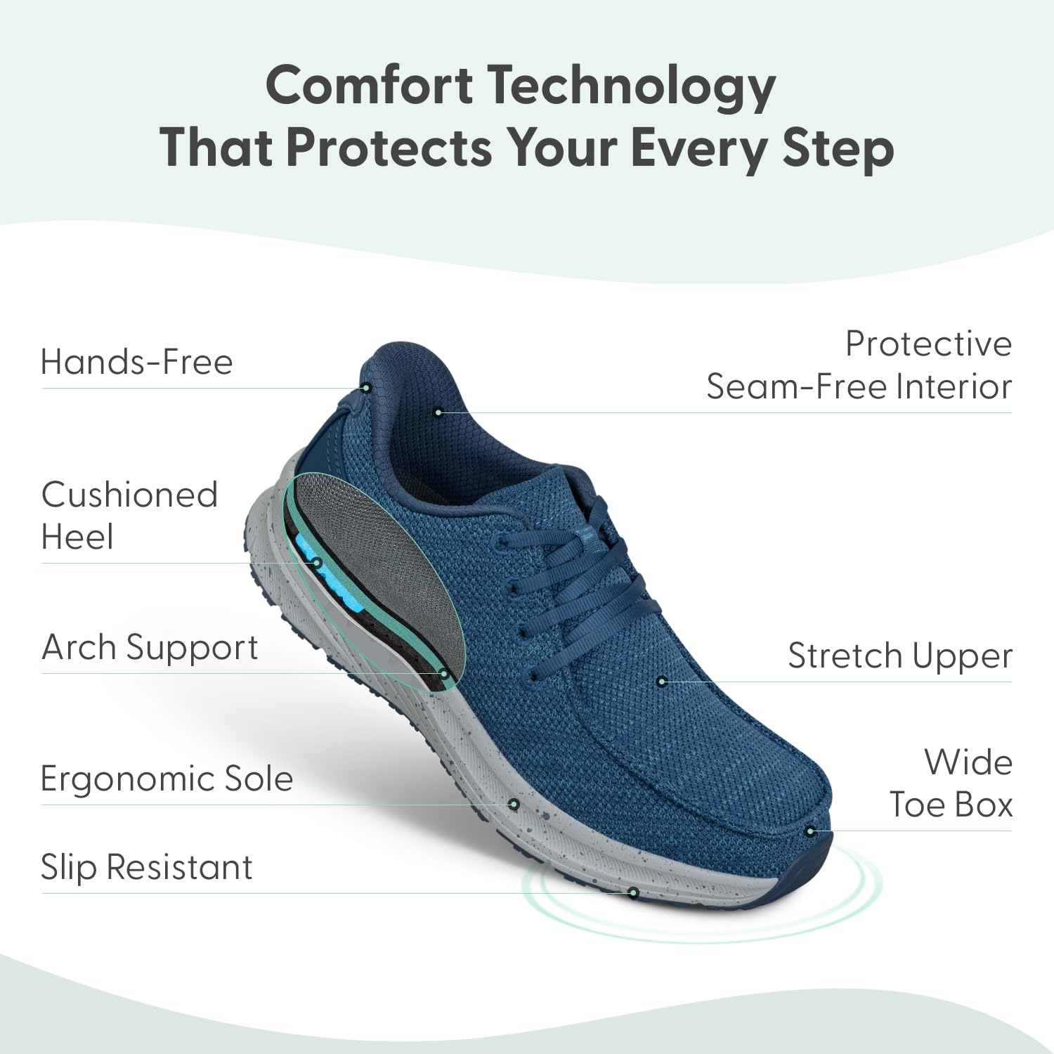 - Hands-Free Slip-On Entry with Stretch Knit Upper: Step in without bending down. The breathable knit fabric moves with your foot for a personalized, custom-like fit all day.
